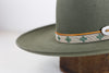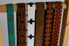 Made with glass beads, and finished with American elk hide leather ties. Each hat band is woven by hand on a loom, bead by bead. Adjustable. Heirloom quality beaded hat bands. Made by hand with intention in Montana, USA by Piehawk Outpost.